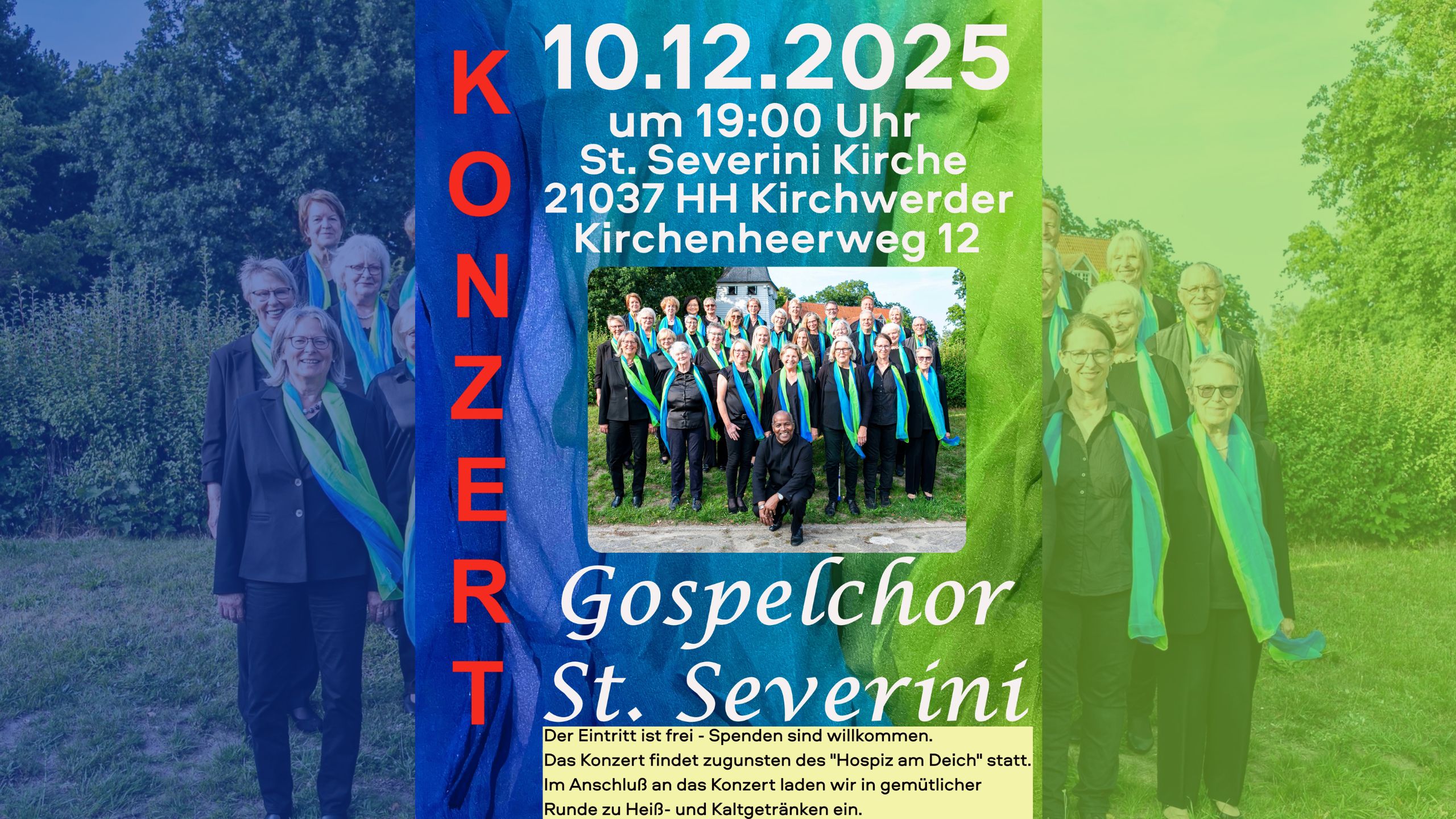 Am Mittwoch, 10. Dezember 2025, findet um 19.00 Uhr ein Benefizkonzert des Gospelchores St. Severini zugunsten des Hospizes am Deich statt.